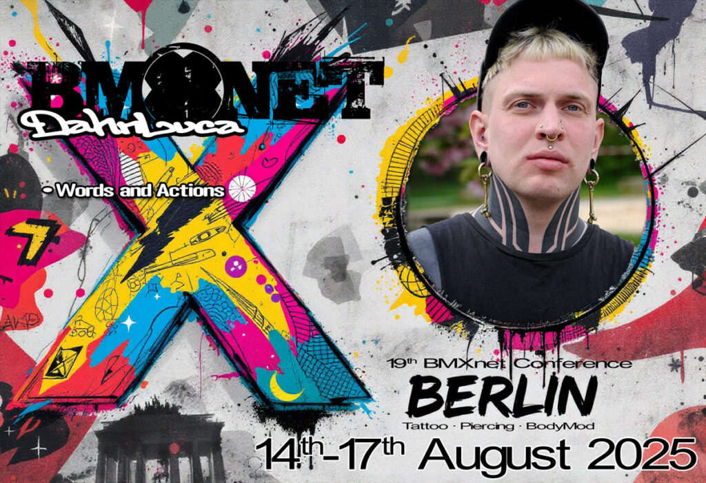 I’m Dahn/Luca, a professional piercer currently piercing at Goldenfang Piercing in Berlin. I’ve been in the industry for about five years and have been attending BMX since the very beginning of my career. This year, I’m especially excited to join the event not just as a participant, but for the first time as a speaker.