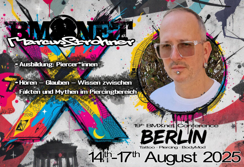 Marcus Strohner, owner of TRUST Mannheim, began his career as a professional piercer at Crazy Greg’s in Heidelberg in 1994. In 1996, he founded TRUST in Mannheim and in 2006, he established the TRUST Tools & Products Piercing wholesale business. Marcus has been a founding member of BMXnet since 2007 and was involved from the very beginning. He also served as a long-time board member. In 2008, he completed the certification for the reprocessing of medical devices.