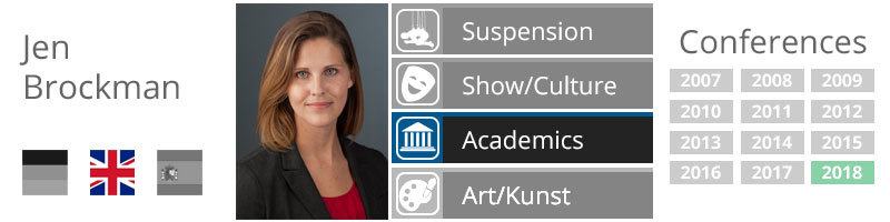 Jen Brockman ist die Direktorin des sexuelle Gewalt Prevention- und Bildungs-Zentrum an der Universität von Kansas. Sie arbeitet seit 2001 im Bereich Opferprävention und Prävention geschlechtsspezifischer Gewalt in drei verschiedenen Staaten bei Gemeinschaftsprogrammen, Flaggschiff-Instituten und staatlichen Koalitionen. Während ihrer Karriere arbeitete Jen als Sex-Kriminalität-Investigation-Trainer für die Arkansas Koalition gegen sexuelle Gewalt und ist zertifizierte Strafverfolgungstrainerin bei sexueller Gewalt und häuslicher Gewalt. Jen ist Trägerin der Visionary Voice Auszeichnung des National Sexual Violence Resource Zentrums und der Auszeichnung der Arkansas Generalstaatsanwaltschaft als Anwältin für Verbrechensopfer des Jahres. Sie erhielt einen Bachelor of Arts von der Drury Universität in Kriminologie und Soziologie und einen Master of Arts in Organisationsführung von der Gonzaga Universität.