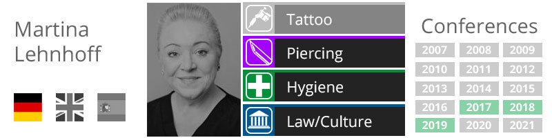 2006 Referentin für die DGSV – Deutsche Gesellschaft für Sterilgut Versorgung e.V. im Bereich Sachkunde für Piercer und Tätowierer