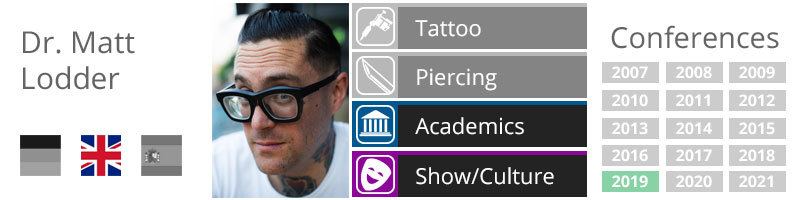 His research primarily concerns the application of art-historical methods to history of Western tattooing. His expertise also extends to wider histories of body modification practices in the West, including tongue splitting, implants, and other procedures. He has also recently published work on feminist debates in pornography, and on the intersections of consent, culture and the law in the context of 1970s and ’80s queer subcultures. His first monograph, on the history of Western tattooing, is currently in production. His latest major exhibition, ‘British Tattoo Art Revealed’, began at the National Maritime Museum Falmouth in March 2017 and is currently on tour nationwide through 2020. Matt also serves as the presenter of the landmark television series “Art of Museums” / ‘Magie des Grands Musées’ / ‘Magie der Museen’, airing across Europe.